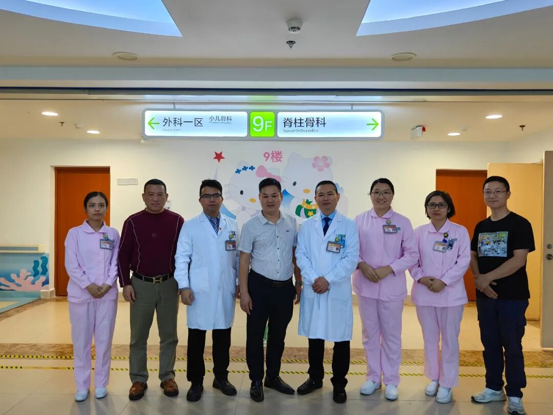 2025年12月11日上午,东莞市电子商务协会秘书长彭海洋带领协会代表一行,专程来到东莞市第八人民医院脊柱骨科住院部,亲切探望慰问正在住院治疗的协会创会会长单位家属郭建民夫人,向患者及家属送上协会的关怀与温暖。